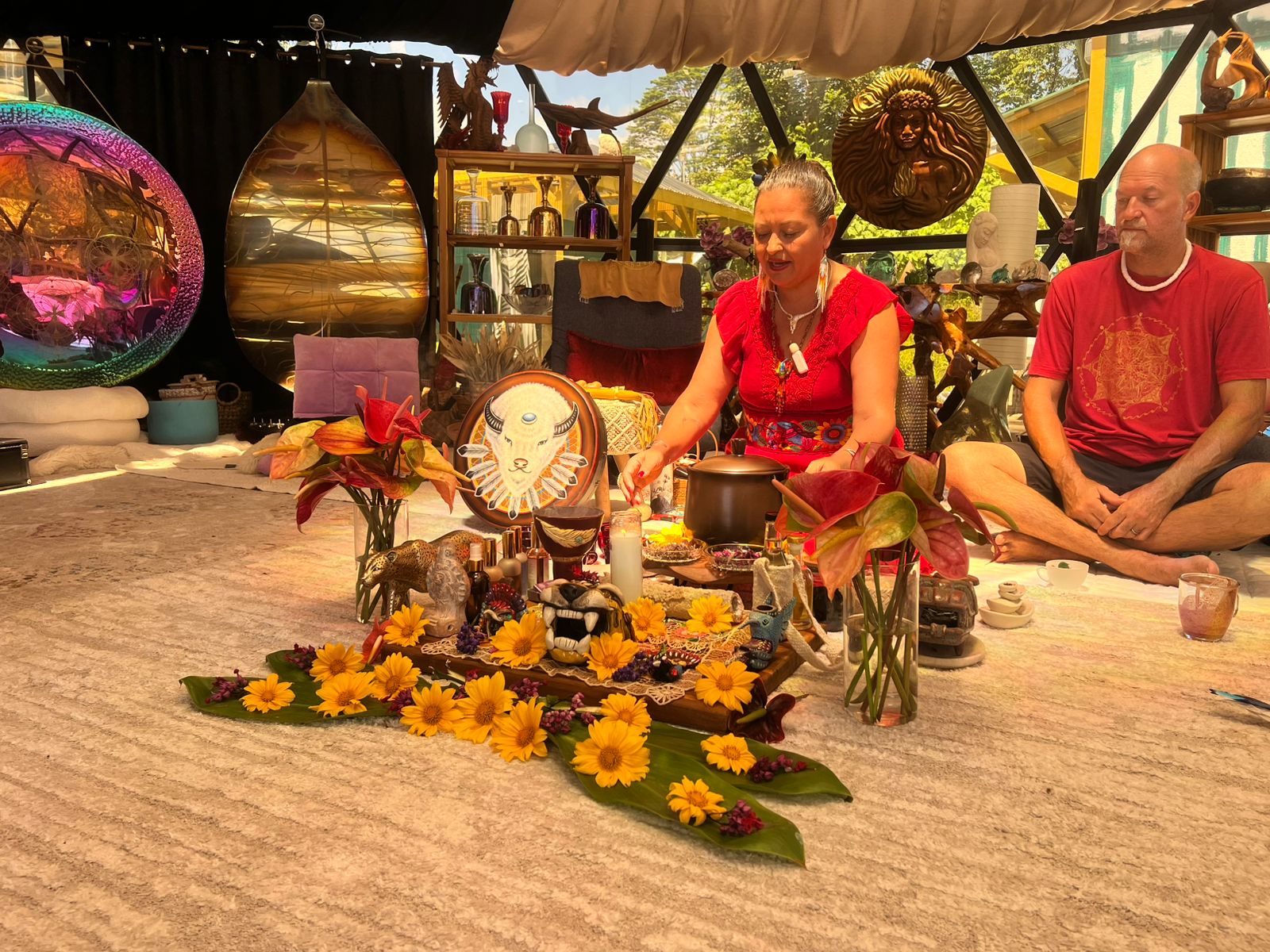 Participants are invited into a living ceremonial container through shared circle, sound journeys, ritual, teachings, voice activation, elemental connection, and soul remembrance.