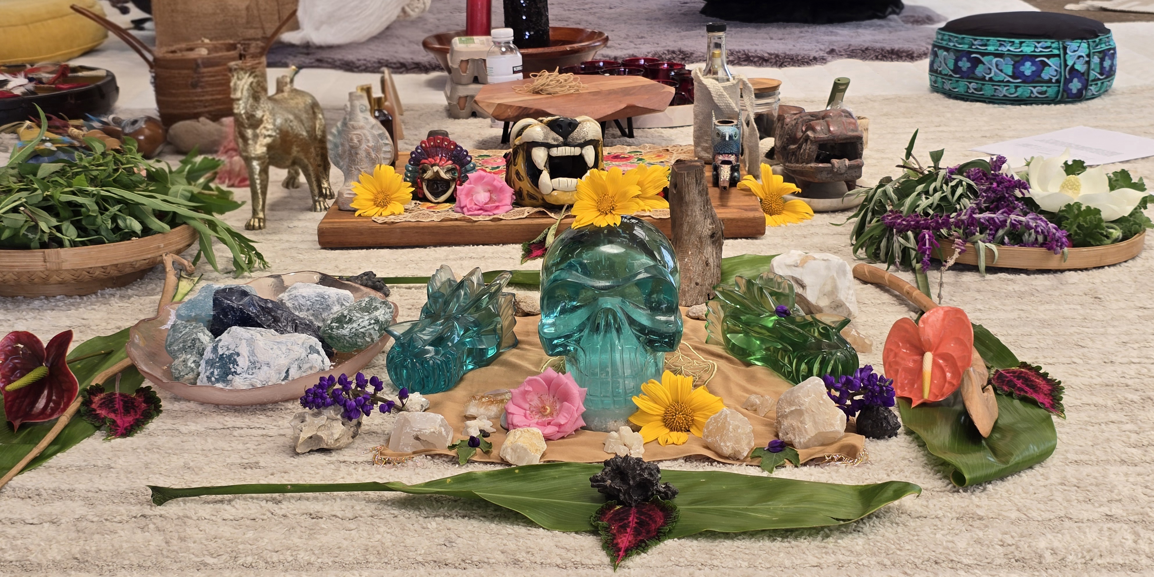 - Ceremonial use of cacao, blue lotus, rapé, and other herbal and aromatic preparations as guided
